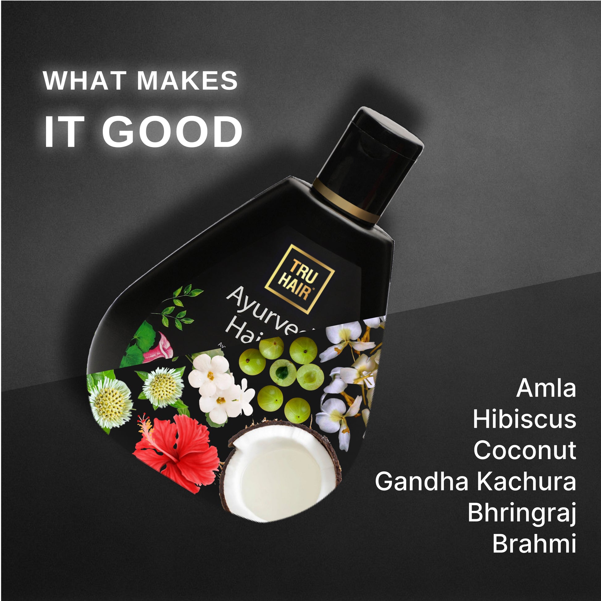 The Tru Hair Oil is made with a special mix of rare Ayurvedic ingredients.