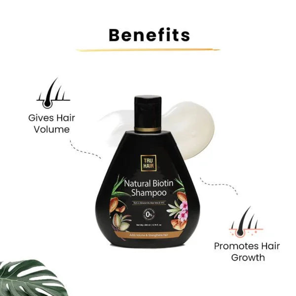- BOOSTS HAIR GROWTH: Tru Hair & Skin Natural Biotin Shampoo contains Vitamin E, which ensures the health of hair follicles and in turn promotes hair growth and adds more volume to hair, making it the best biotin shampoo for hair growth.
