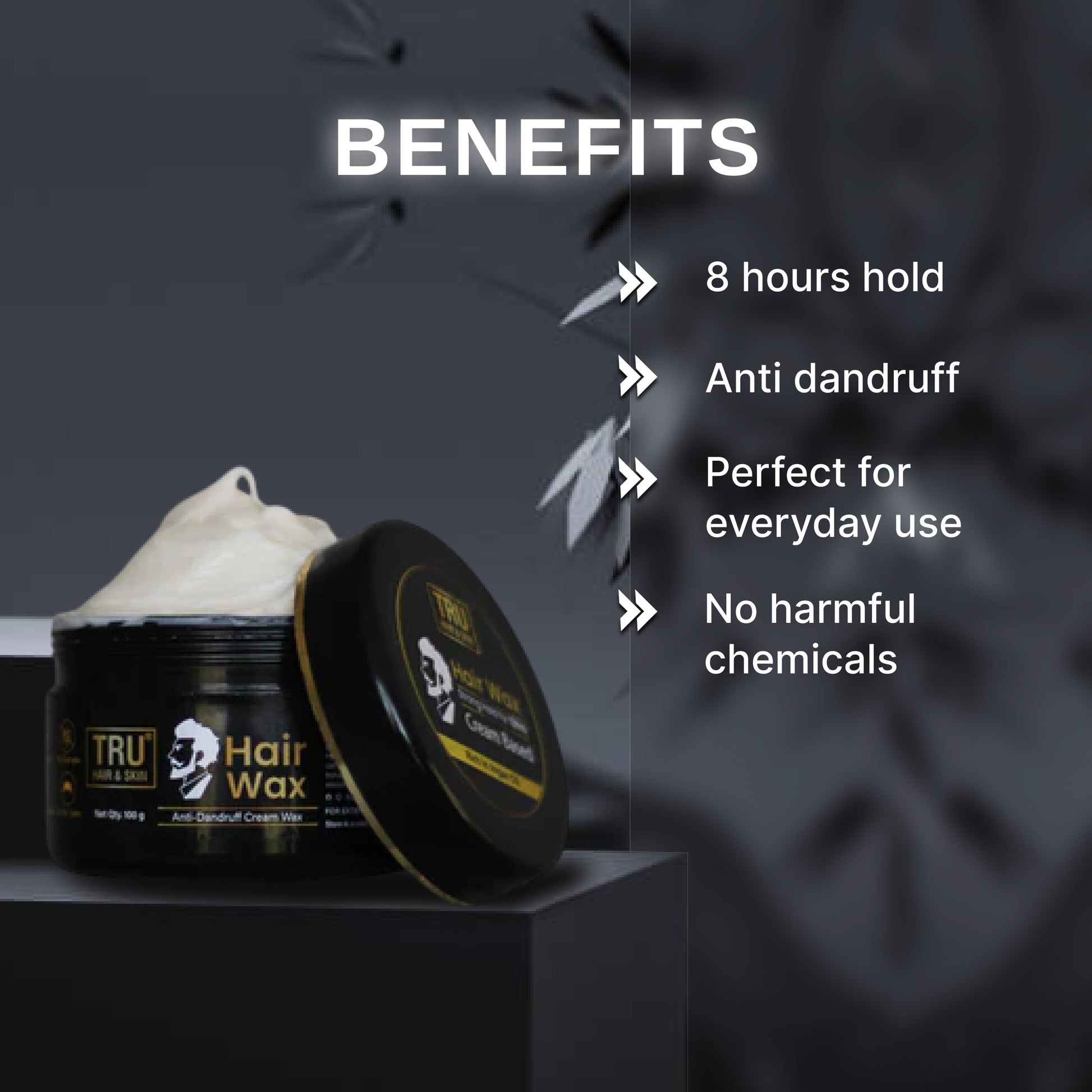 Our Hair wax cream is made of natural ingredients and is chemical free. Hair wax cream itself does not cause dandruff, but improper use or product buildup can make dandruff more noticeable. Wash hair regularly to prevent buildup.