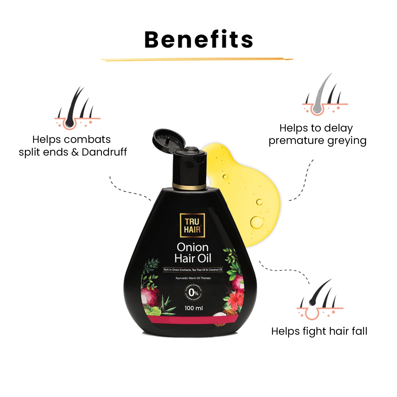 - FIGHTS HAIR FALL & DANDRUFF: Our best Onion Oil for hair is a combination of onion juice extracts and 10 other novel ingredients, that fight dandruff, reduce hair fall, and strengthen hair.