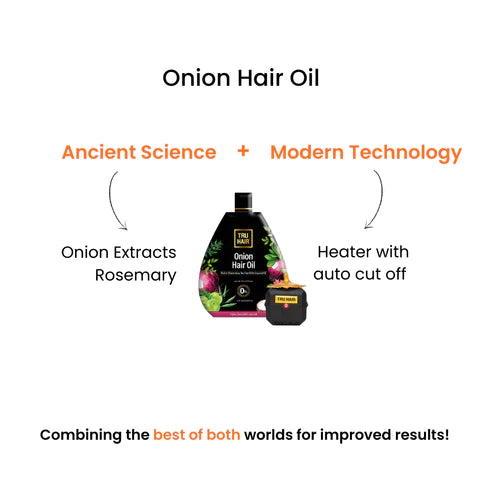 Tru Hair & Skin offers the best Onion Hair Oil with an amazing formulation for those looking to combat hair issues like hair fall and dandruff while adding shine to hair.